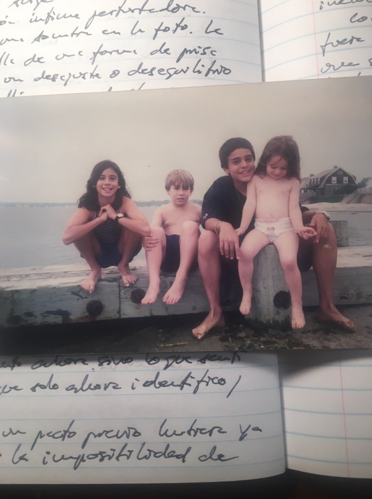Buscando un libro veo y miro una foto específica en uno de los estantes de mi estudio, la que hicimos de los cuatro primos en una playa de Connecticut. Surge el recuerdo de una sensación íntima perturbadora, una memoria involuntaria. O no es memoria, no un recuerdo, sino que pertenece a la materialidad de la foto, y ahora la leo.